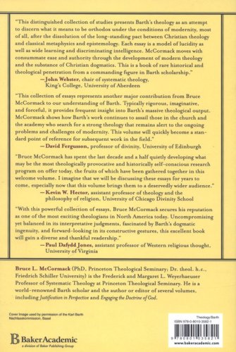 In this enlightening study, Bruce McCormack reconsiders the importance of Karl Barth's theology. McCormack begins with Barth's relation to nineteenth-century theologians and then turns to critique the works of contemporary authors within postmodern circles who have attempted to reinterpret Barth to fit their categories. The later sections of McCormack's study probe more deeply into Barth's theology and consider European perspectives. As the title affirms, McCormack suggests that Barth was, in fact, both orthodox and modern in his theology.