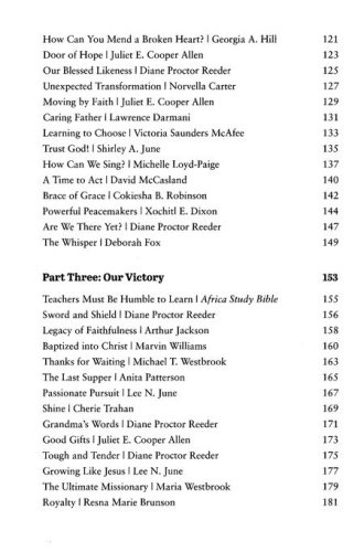 Through stories of the African American experience, readers of all ethnicities will reflect on God's wisdom available for every adversity, be prompted to remember the victories He has already provided, and be empowered torealize a hope-filled future. Through the various authors, you'll gain perspectives that span multiple generations.
