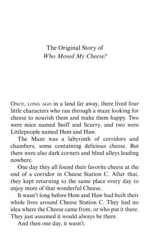When we first met them in Who Moved My Cheese?, two mouse-sized characters named Hem and Haw were faced with unexpected change, when the Cheese they loved suddenly disappeared. Haw learned how to deal with that change successfully by setting off in search of New Cheese. But Hem remained stuck where he was.