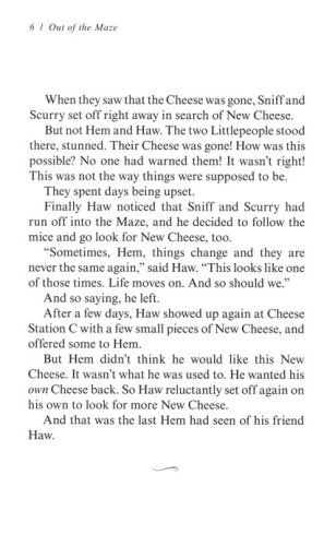 When you follow Hem and his new friend, Hope, on their new journey, you'll discover how to get more out of life by thinking outside the box. Or, in this case, outside the Maze.