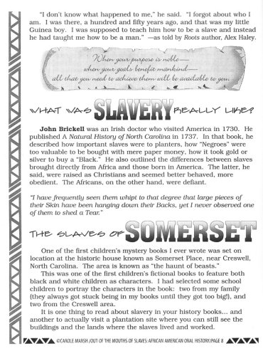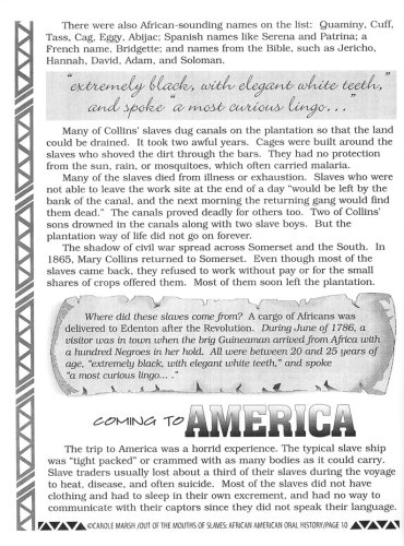 They had no pens and they had no paper, but it didn't matter. Slaves had plenty to say and share – their stories, their sufferings, their wisdom, their wit. Words spoken and tales told completely unfiltered by others can teach young people not only the facts, but the very soul of what happened in the past. Hear the people of the past in their own words through diaries, interviews, quotations, poetry, and songs. 36 pages, softcover. Ages 8-13.