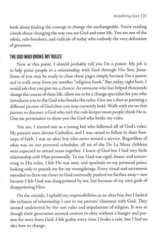 Everyone knows the God who keeps the rules, and tells us to keep them, too. But most have never met the God who breaks the rules, and breaks them to bring us close. Religion needs an updated understanding of God. We have defined God and put Him in a box—when it is God who wants to define us. God is not satisfied with our living a limited life with a limited view of Him, full of confusion, hampered by doubt, and clouded despite the hundreds of thousands of churches, pastors, and sermons. Whether your rules are personal, religious, environmental, or societal, if He has to break them to get to you, He will. God will do whatever it takes to clarify you, call you, prepare you, and promote you. He broke the rules for David, for Abraham, for Moses, for Joshua, for Rahab, and He will break them for you too, if you let Him. Because when you’re ready to rediscover God, there’s not a single rule that can get in the way.