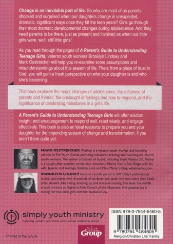 As you read through the pages of A Parent's Guide to Understanding Teenage Girls, veteran youth workers Brooklyn Lindsey and Mark Oestreicher will help you re-examine some assumptions and misunderstandings about this season of life. Then, from a place of trust in God, you will gain a fresh perspective on who your daughter is and who she's becoming.