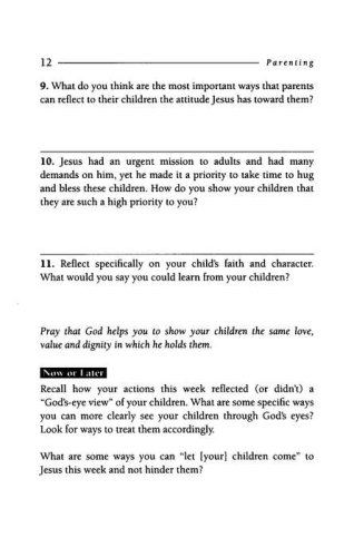 Parenting is hard work, full of tough choices and new situations. And many voices compete with ours for our children's attention. In a rapidly changing world, how can we parent in a way that will cause our children to love Christ deeply and live for him? These nine-session LifeGuide ® Bible Study by Richard Patterson Jr. address nine parenting challenges, pointing us directly to time-tested truth from Scripture that helps us raise our children with wisdom and joy. For over three decades LifeGuide Bible Studies have provided solid biblical content and raised thought-provoking questions—making for a one-of-a-kind Bible study experience for individuals and groups. This series has more than 130 titles on Old and New Testament books, character studies, and topical studies.