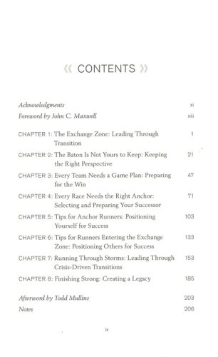 Successfully handing off the leadership baton to the next leader is essential to give our organization the best opportunity to thrive after our time of service. A smooth handoff requires meticulous planning and forethought. Yet most leaders put off even thinking about leadership transition until they are faced with a situation where they have no choice but to make a change.