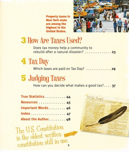 Discover why taxes are necessary to pay for the basic services they use everyday, how tax payments are calculated, and why people often disagree on how taxes should work.A True Book: Civics series helps children become productive citizens by presenting core civic knowledge in a fun and engaging way. This series includes an age appropriate (grades 3-5) introduction to curriculum-relevant subjects and a robust resource section that encourages independent study. From libraries and schools to roads and public parks, governments provide their citizens with a large number of important utilities and services. Such things are often expensive to build and maintain.