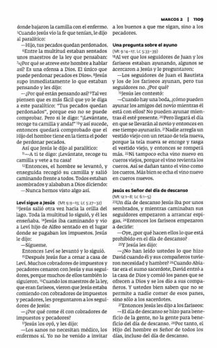 Esta versión de la Biblia tiene como objetivo presentar una traducción que comunique el significado del texto original de manera agradable y de fáil lectura. Para tal fin, hemos seguido principios de traducción que producen en nuestro idioma una equivalencia fiel y actual del mensaje orginal.VocabularioPesas y medidasMapasA Dios le preocupa cómo te sientesPlan diario de lectura biblicaTamaño del texto: 8-puntos8.25" x 5.25" x 1.25"