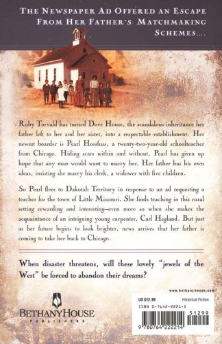 Book 2 of Dakotah Treasures. Author Lauraine Snelling takes readers further forward in Ruby Torvald's story as Dove House becomes a well-known establishment. Ruby plays matchmaker between the lovely but hidden Pearl and the carpenter Soren, who longs to uncover the beauty in Pearl that seems to be damaged by a tragic childhood. Ruby's own heart is torn by loyalty to the major and a surprising new suitor. But when a disaster threatens their future, will these jewels of the prairie be forced to abandon their dreams for the security of the east?