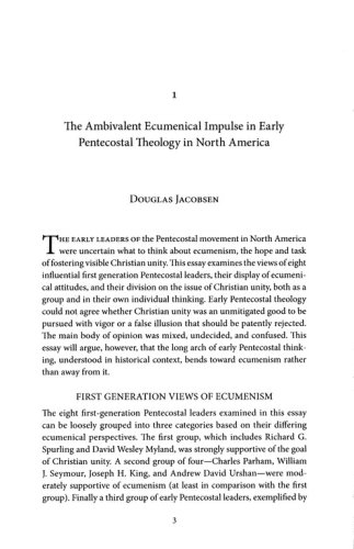 This volume of ecumenical documents, key texts, and critical essays is the first collection of its kind exclusively dedicated to Pentecostalism and its contributions to Christian unity. In the first part, a cadre of internationally renowned scholars addresses the ecumenical heritage and perspectives of the Pentecostal movement since the early twentieth century.