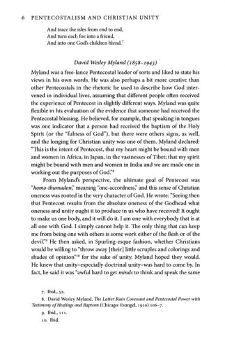 Most of these essays were first presented by the ecumenical-studies group of the Society for Pentecostal Studies, currently the only organized ecumenical think tank among Pentecostals in North America. Since its formation in 2001, the group has encouraged Pentecostal participation in ecumenical concerns, has hosted Roman Catholic-Pentecostal conversations at the annual meeting of the Society, has invited international scholarly debates on ecumenical matters, and has engaged in the study of ecumenical consensus statements.