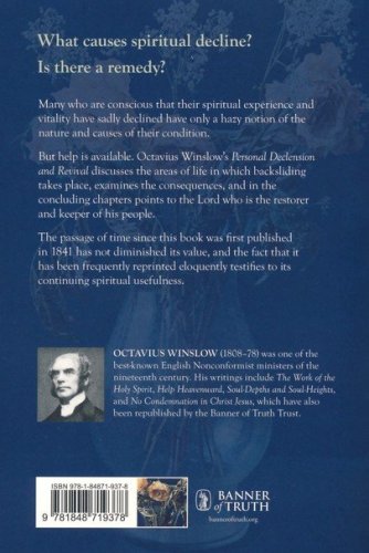 But such help is available, and can be found in works like Octavius Winslow’s Personal Declension and Revival. It discusses the areas of life in which backsliding takes place, examines the consequences, and in the concluding chapters points to the Lord who is the restorer and keeper of his people.