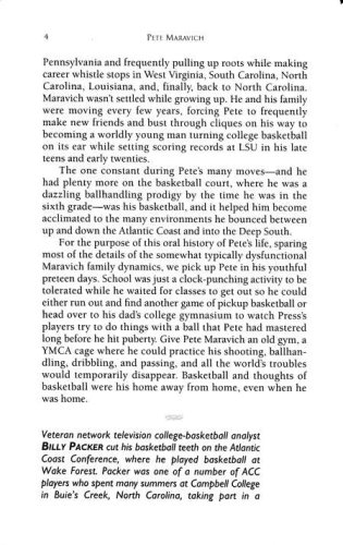 Pete Maravich might not have been the greatest basketball player of his generation, but he was unquestionably the most exciting and entertaining. A magician at handling or shooting the ball and the most prolific scorer in college basketball history, "Pistol Pete" was as recognizable as he was flashy. While he has been gone for more than fifteen years, his on-court showmanship and off-court charisma endure for millions of basketball fans who fondly remember him. In this book, players, coaches, friends, fans, and relatives recall the soft-spoken man who turned away from heavy drinking and turned toward God. Maravich's life is an inspiration for all who love the game of basketball and appreciate the contributions made by one of the best ever to play it.