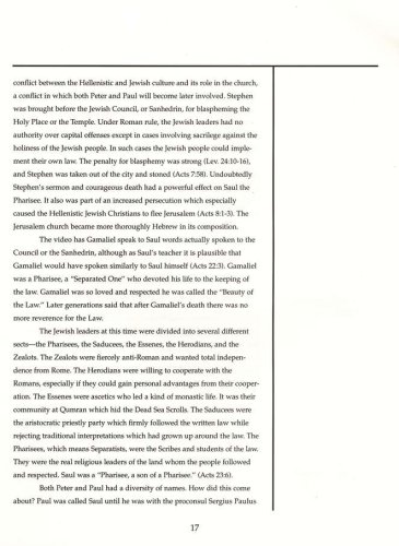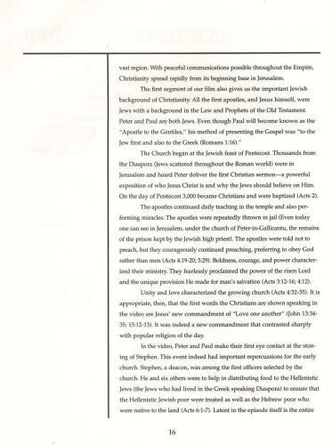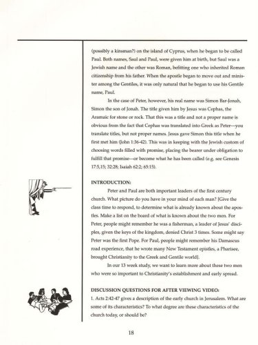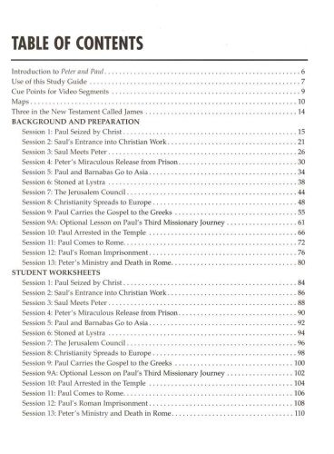 Teacher's guide and student's worksheets for the Peter and Paul Video video series provides cue points for video segments, maps, background and preparation. There are video summaries, introductions, and background and information for the teacher. Companion scriptures are also referenced. 13 student worksheets are included.