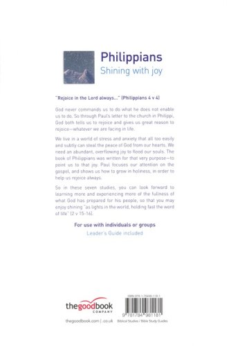 If you would like to be more joyful, and for your church to be more joyful, these seven studies in the book of Philippians will show you how to live with hope no matter what your circumstances. Written from a prison cell by a man with an uncertain immediate future, Philippians is a torrent of joy, with its source in the wonderful gospel. Study Philippians to discover how to shine with joy.