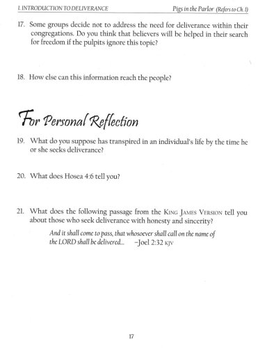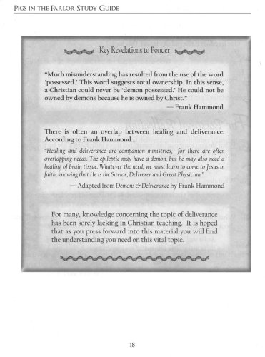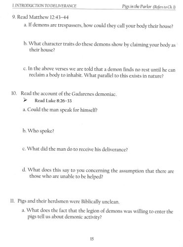 both individual and group study. Are you in search of deliverance for yourself or for someone you love? This companion book to Pigs in the Parlor has been designed as a tool to enable you to diagnose and effectively deal with your deliverance needs.