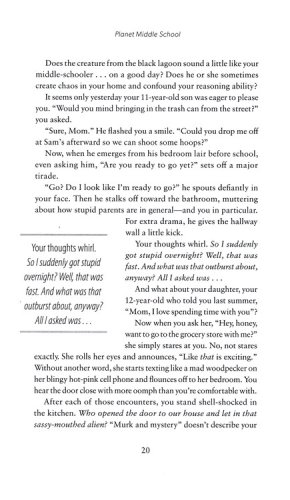 It happens to every parent. One day, you have a sweet son or daughter who loves to snuggle on the couch and who puts a smile on your face just by walking into the room. The next day, it's as if someone left the door open and let in an alien with a smart mouth and an attitude that, frankly, you could do without. Entering middle school is like stepping onto a different planet–for parent and child alike. It's a planet where peer pressure, social media, and hormones can wreak havoc in your child's life and in your relationship with him or her.