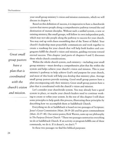 This practical resource helps pastors and small group point people develop and implement a 12- to 18-month strategic plan for their ministries in order to keep it healthy and growing. Developed at Saddleback Church, this completely customizable plan works for any church size and any denomination. Readers answer 22 questions that help them understand their vision, the purpose of their ministry, and how to connect members, grow numerically and spiritually, measure progress, develop leaders, create opportunities to serve, and much more. By the time they're done, readers will have developed their own personalized planner for the next year to 18 months so that they can feel prepared, confident, and purposeful about their small group ministry.