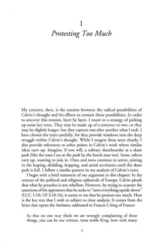 In this exploration of John Calvin's political thought, Roland Boer treats Calvin as a biblical scholar and political philosopher, showing us elusive aspects of Calvin's Institutes. Boer investigates Calvin's careful thinking in the Institutes as well as in his biblical commentaries, pursuing Calvin's understanding of political freedom.