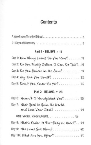 You will walk away understanding that God really believes in you, and you matter to his plan. You will learn what it means to belong, so you no longer have to fake it or try to fit into this world. And you will gain confidence to experiment with your faith, risk failure, and become who God designed you to be.