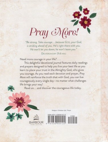 This delightful devotional journal features daily readings and prayers designed to help you live your best life as you learn to place your trust in the Almighty God, who gives you courage. Inspired by this promise from God's Word: "Be strong. Take courage. . .because God, your God, is striding ahead of you. He’s right there with you. He won’t let you down; he won’t leave you" (Deuteronomy 31:6 MSG). Pray More reinforces the truth that with God, you can live courageously every single day—no matter what challenges life brings your way.