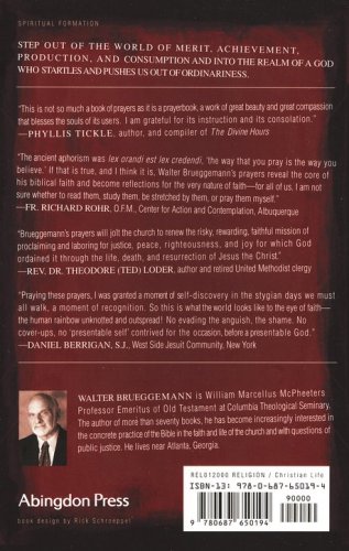 In Prayers for a Privileged People, this much-published author sculpts—as carefully as if with chisel—prayers on behalf of those who are people of privilege and entitlement—the haves—at an urgent moment in our society. The privileged face, on the one hand, the seduction of denial or, on the other, the temptation of despair. These prayers of wisdom and prophetic power remind us that when things go wrong , when we are afraid , and when we feel prodded by those who lack voice, there is a conversation we can have—a conversation situated amid the promises and commands of God.From the Circuit Rider review: "This is a beautiful collection of poetic and prophetic prayers, words to be prayed with, mulled over, pondered, savored—and challenged by. For in this little text, we glimpse a side of Brueggemann we may not have known through his rich Scripture studies alone. Here, he draws on not only his extensive years of study and teaching of the Psalms and the prophets, but his own faith immersion in the church year and in the liturgies of the church." (Click here to read the entire review.)