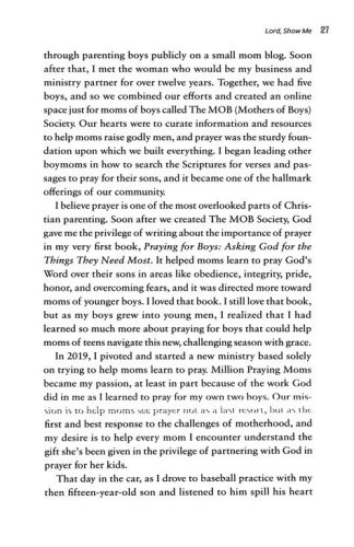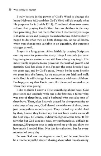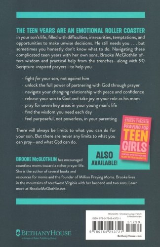 The teen years are an emotional roller coaster in your son's life, filled with difficulties, insecurities, temptations, and opportunities to make unwise decisions. He still needs you . . . but sometimes you honestly don't know what to do. Navigating these complicated teen years with her own sons, Brooke McGlothlin offers wisdom and practical help from the trenches–along with 90 Scripture-inspired prayers–to help you