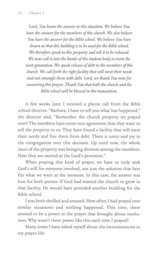 Many things can hinder our prayers from being answered, but often a major hindrance is a lack of understanding of the those who long for more power in their prayer life. Barbara Wentroble provides insight and understanding in this area of the believer's authority–activating the authority Jesus has given us–in the spiritual realm to give commands, take action, and cooperate with what God is doing. This book will help intercessors pray in a more effective way in this new season of a worldwide prayer movement and increased faith to see the invisible things from the heart of God made manifest on earth.