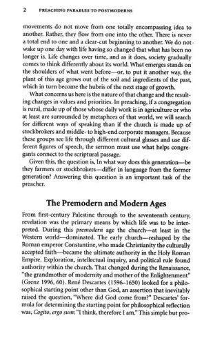 Stiller argues that Jesus' parables, through theirnarrative, personal, and oral dimensions and reversal ofexpectations, provide unique access to Christianity for thosewhose experience and hopes we label "postmodern."