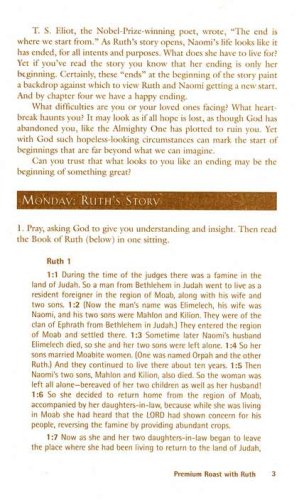 Premium Roast with Ruth considers one of the two great women for whom a book of the Bible is named. designed for group or individual study, this Bible study demonstrates how God is in control; how He always keeps His promises; how He can reverse impossible circumstances; and ho He blesses the faithful more richly and for longer than they could ever imagine.
