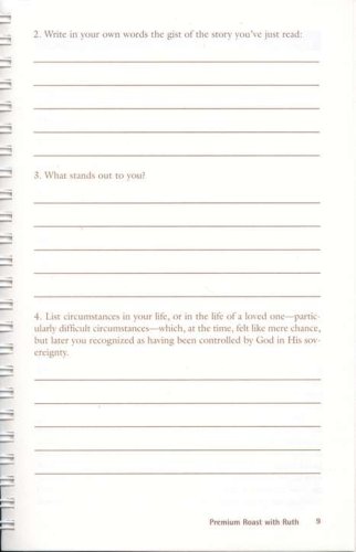 Premium Roast with Ruth is part of the Coffee Cup Bible Studies, a series of Bible studies for women in compact, workbook format that examine the "life and times" of certain Bible characters and the books of the Bible that pertain to them. Each study is to be read over a four-to-six week period, and study sections are broken down into short, daily segments designed to fir reader's busy lifestyles.
