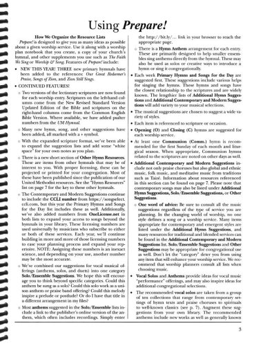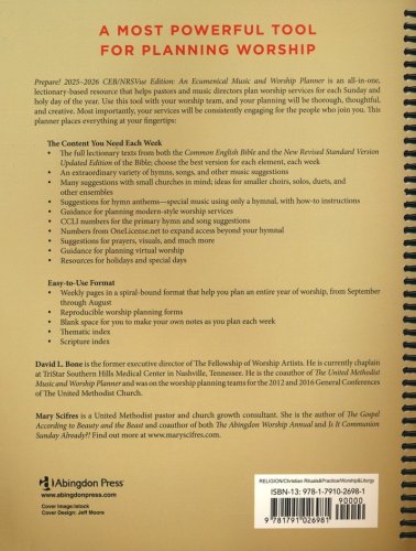 A weekly worship planning book for pastors and musicians—refreshed! Discover the enhanced 2025-2026 edition of Prepare!, your ultimate music and worship planning companion for local churches of all sizes. This updated resource has new features, including full texts from the popular CEB and NRSVue Scripture translations, blank writing space for your ideas, music recommendations for various ensembles, hymn and song suggestions, visual worship suggestions, and more. With a user-friendly layout and comprehensive indexes, Prepare! makes planning worship services easier for both music directors and pastors. This all-in-one guide provides everything you need to plan worship throughout the Church Year. It includes extensive musical suggestions from a wide range of denominations, including the standard hymnals from the major Christian churches. Hymnals: Africana Hymnal, The Baptist Hymnal, Chalice Hymnal (Disciples of Christ), The Faith We Sing, Glory to God: The Presbyterian Hymnal, The Hymnal 1982 (Episcopal), Hymns for the Family of God, Lutheran Book of Worship, The Presbyterian Hymnal, The New Century Hymnal (United Church of Christ), Renew! Songs & Hymns for Blended Worship, Songs for Praise and Worship Sing along Edition, The United Methodist Hymnal, Voices United, Worship & Song, and Worship III (Roman Catholic).