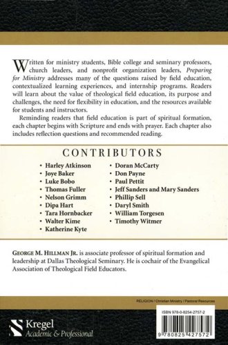 Written for ministry students, Bible college and seminary professors, church leaders, and nonprofit organization leaders, Preparing for Ministry addresses many of the questions raised by field education, contextualized learning experiences, and internship programs. Readers will learn about the value of theological field education, its purpose and challenges, the need for flexibility in education, and the resources available for students and instructors. Reminding readers that field education is part of spiritual formation, each chapter begins with Scripture and ends with prayer. Each chapter also includes reflection questions and recommended reading. CONTRIBUTORS " Harley Atkinson, Toccoa Falls College " Joye Baker, Dallas Theological Seminary " Luke Bobo, Lindenwood University " Thomas Fuller, Samford University " Nelson Grimm, Northeastern Seminary " Dipa Hart, Dallas Theological Seminary " Tara Hornbacker, Bethany Theological Seminary " Walter Kime, Ashland Theological Seminary " Katherine Kyte, Gordon Conwell Theological Seminary " Doran McCarty, Southern Baptist Seminaries " Don Payne, Denver Seminary " Paul Pettit, Dallas Theological Seminary " Mary Sanders and Jeff Sanders, Bethel University " Phillip Sell, Trinity Evangelical Divinity School " Daryl Smith, Asbury Theological Seminary " William Torgesen, Moody Bible Institute " Timothy Witmer, Westminster Theological Seminary