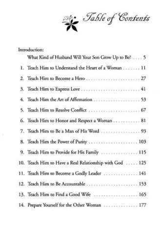 "I have three sons, two stepsons, two son-in-laws, and nine grandsons! Any help I can glean to give me more wisdom is welcome. I would have welcomed more help like this when I was a young mother raising my young men for ’the other woman.’"