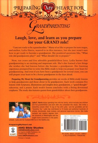 "I am not ready to be a grandmother." That's what author Lydia Harris said when she first learned that she was about to enter a new stage of life. Many of us like to prepare for new stages, and Lydia wanted to in this instance, but she just wasn't sure how to get ready to become a grandparent . She pondered questions like, "What role did grandparents play?" and "What should I do to prepare?" Npw ten years and four grandchildren later, Lydia knows that grandparenting is an ezciting and important role. She's also learned a few things she wishes she had known before she became a grandparent . Her learning experience prompted her to write this Bible study to help you prepare your heart for grandparenting. And even if you have been a grandparent for several years. you can still prepare your heart to be a better grandparent in the days ahead.