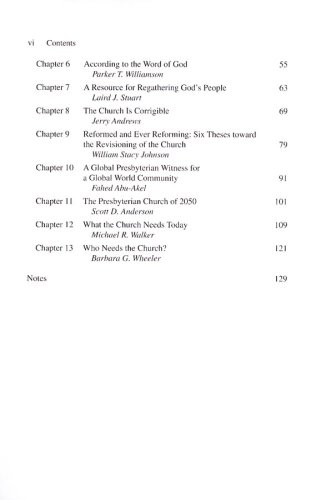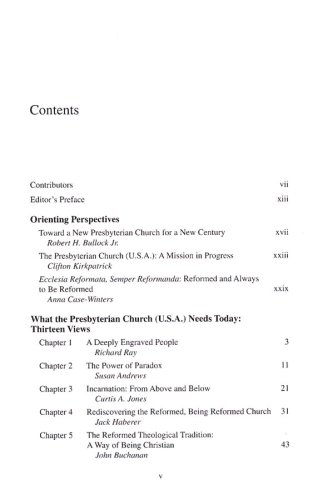 Beginning with the motto "The Church Reformed and Always Being Reformed," thirteen Presbyterian leaders and representatives of a number of different groups across the theological spectrum offer their reflections on the current state of the Presbyterian Church (U.S.A.) and what the denomination needs today. This book presents various viewpoints, values, and commitments found throughout the denomination. Discussion and reflection questions at the end of each chapter make this book ideal for individual and group study.