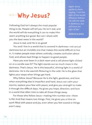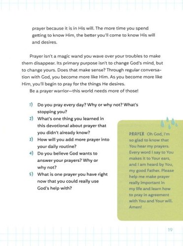 • A path to regular practice of Bible study and prayer is carved out through one devotion per week, easing tweens into a natural interest and desire for study and reflection