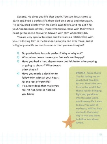 • Open-ended prompts are thought-provoking and encourage preteens to trust God and themselves