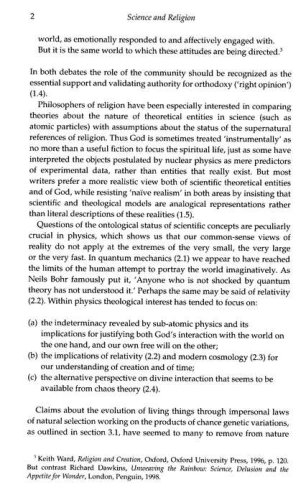 This reader brings together carefully selected material from a wide range of authors on the relationships between science, religion and theology.It samples the recent literature on the challenges to religion posed by both modern physics and evolutionary biology as well as exploring the relationship between scientific and theological approaches.Topics include models of interaction between science and religion, historical reflections on the "conflict thesis," scientific and theological methods, creation and modern cosmology, uncertainty and chaos, creationism and evolutionary theory, the anthropic principle and design, and the challenge of reductionism.Contributors include Ian Barbour, Michael Behe, Richard Dawkins, John Habgood, Mary Hesse, T. H. Huxley, Alister McGrath, Arthur Peacocke, John Polkinghorne, Michael Ruse, Keith Ward and Fraser Watts.