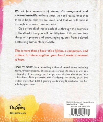 We all face moments of stress, discouragement and uncertainty in life. In those times, we need reassurance that there is hope, that we are loved, and that we will make it through whatever comes our way. God offers all of this to each of us through the promises in His Word. Here in Promises from God for Life's Hard Moments, you will find fifty-two of those promises along with prayers and encouraging quotes from beloved bestselling author Holley Gerth.