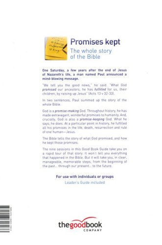 This Good Book Guide will take you on a rapid tour of the whole story of the Bible. Over nine sessions, you’ll travel from the beginning of the past, through our present, to the future. Each session you'll discover one of God's wonderful promises, and see how He kept it in Jesus.