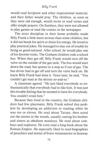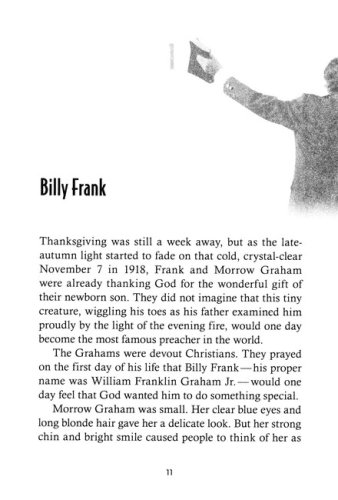 No one guessed he would change the world. A simple country farm boy once prayed that God would use him…and prayed…and prayed. And God did use him, beyond what he ever imagined. He grew into a man who would lead millions of people to Christ, a man who would be known as the greatest evangelist of our time. Come read the story of Billy Graham and follow his life from his days as a boy, who wasn’t so great in school, to a man who would teach the world the greatest lesson of all: how to know and live for Christ.