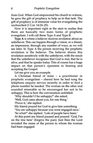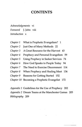 There are many biblical examples of God's people using prophecy in their witness to unbelievers. Jesus used prophecy in His ministry to seekers. After Pentecost, God gave the gift of prophecy to believers as one resource among many in their witness to the world. Furthermore, Christians today receive prophecies for those who don't know Christ, often with immediate and life-changing effects. This book contains many such testimonies.