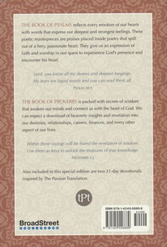 Every emotion of the heart is reflected in the Psalms with words that express our deepest and strongest feelings. They free us to become emotional, passionate, sincere worshippers, giving us an expression for faith and worship. The Passion Translation presents these 150 poetic masterpieces in modern English to convey the depth of our longings and fears, joys and celebration, becoming a mirror to the heart of God’s people in our quest to experience God’s presence.
