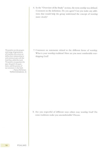 In this nine-week study, women of all ages will learn how selected psalms teach relevant lessons about authentic worship. Part of the discovery series, this updated edition has been reorganized to facilitate either individual or group use and supplemented with inspirational sidebars and short, 3-5 minute teaching videos. Scan the video QR code with a smart phone or visit the series Web site to watch Sue provide historical and cultural background, teach important truths found in each week's lesson, or ask thoughtful questions to encourage deeper discussion.