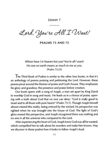 Every emotion of the heart is reflected in the Psalms with words that express our deepest and strongest feelings. They provide comfort and joy, leading us to the place where worship flows. This poetry on fire is divided into five books, mirroring the five books of Moses that form the first books of the Old Testament. Together they convey the depth of our longing and fears, joys and celebration, becoming a mirror to the heart of God’s people in our quest to experience God’s presence.