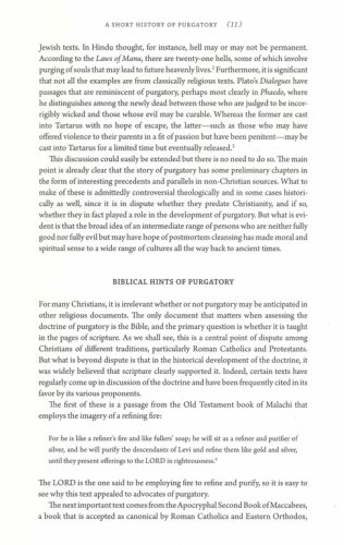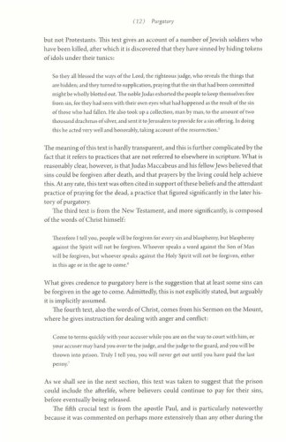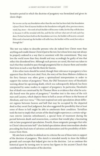 and imperfections before they will be fully made ready for heaven. He examines Protestant objections to the doctrine and shows that the doctrine of purgatory has been construed in different ways, some of which are fully compatible with Protestant theology. In particular, while purgatory has often