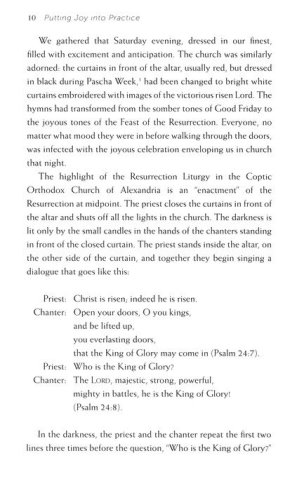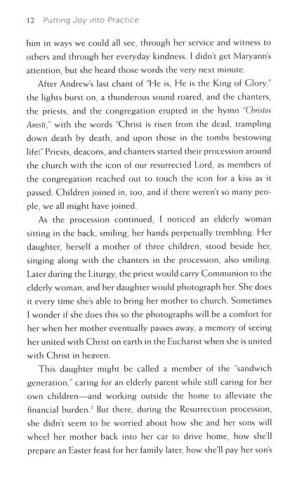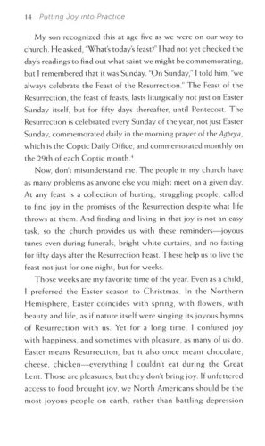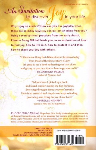 Putting Joy into Practice: Seven Ways to Lift Your Spirit from the Early Church is an invitation to a life of joy. Phoebe Farag Mikhail explains what joy is and how to experience it through seven spiritual practices that cultivate our inner lives and connect us to our communities. These seven practices, which include giving thanks, hospitality, praise, and more, take us on a journey that leads to joy through the giving and receiving of sacrificial love. She describes her own experiences and struggles with joy and offers practical ways to implement these practices to increase joy in our own lives and in the lives of all those around us.
