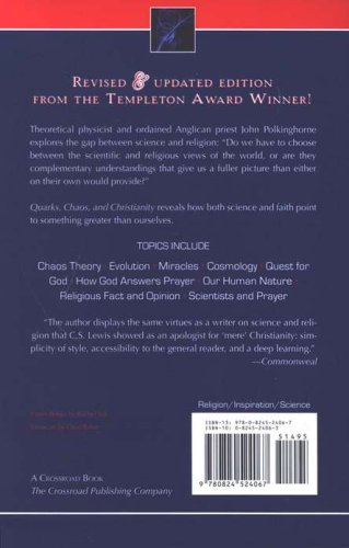 Templeton Award winner and theoretical physicist John Polkinghorne explores the gap between science and religion. "Do we have to choose between the scientific and religious views of the world, or are they complementary understandings that give us a fuller picture than either on their own would provide?" Quarks, Chaos, & Christianity shows the ways that both science and religion point to something greater than ourselves. Topics include: chaos theory; evolution; miracles; cosmology; guest for God; how God answers prayer; our human nature; religious fact and opinion; scientists and prayer.