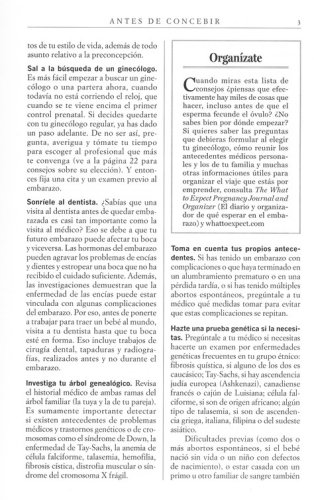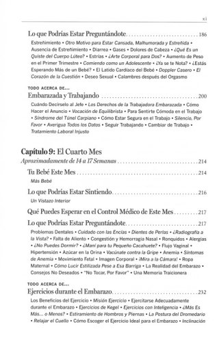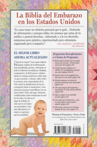 Está repleto de información actualizada no sólo sobre lo nuevo que se sabe sobre el embarazo, pero también sobre los temas que son relevantes para las embarazadas. Heidi Murkoff ha respondido decenas de nuevas preguntas e incluido nuevos materiales requeridos por los lectores, como, por ejemplo, una sección detallada en todos los capítulos sobre cada mes del embarazo sobre el desarrollo fetal en cada una de las semanas de este, un capítulo expandido sobre la pre-concepción y uno completamente nuevo sobre embarazos múltiples. Siendo más completa, reconfortante y empática que todas las anteriores, esta edición incorpora nuevos descubrimientos en obstetricia y toca diferentes tendencias actuales (desde el tatuaje y otras modificaciones corporales hasta el Botox y la aromaterapia). Hay mucho más que antes sobre temas prácticos (incluyendo una sección aumentada sobre cuestiones relacionadas con el sitio laboral), físicos (con más síntomas y soluciones para estos), emocionales (más consejos sobre cómo navegar la montaña rusa emocional), nutricionales (desde la dieta baja en carbohidratos hasta la vegana y desde la comida chatarra hasta la adicción a la cafeína) y sexuales (lo que es excitante y lo que no lo es al hacer el amor durante el embarazo), así como mucho más apoyo para ese muy importante socio en la maternidad: el papá.