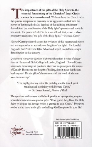 Questions and Answers on Spiritual Gifts was taken from a series of discussions at Hampstead Bible College in London, England. Howard Carter answered a broad range of questions like: How do you explain the visions of Daniel? If someone has the gift of healing, does it mean that he can heal anyone? Do the gift of discernment and the word of wisdom sometimes overlap? The questions in this book provide an eye-opening, easy-to-understand education on spiritual gifts.